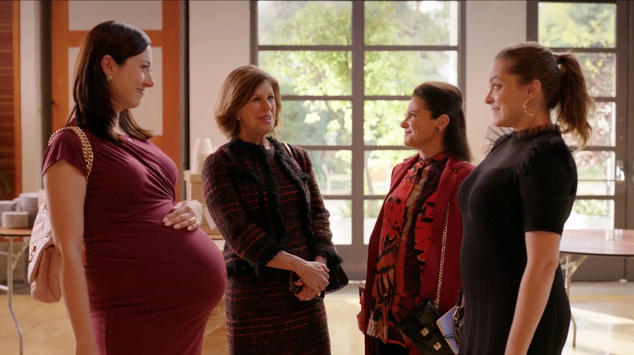 At the same time, Paula is at the law firm trying to resolve an issue Rebecca’s former prison roommate Nicki is having which is holding up her release. In New York, Rebecca meets up with her mother at the Jewish convention hall the award service being held at. It’s there they meet up with a very pregnant Audra Levine accompanied by her mother Marilyn. They convene a planning committee meeting where the Levines question if Naomi's star guest Elayne Boosler will attend. Naomi assures them her famous friend will be there which only escalates the tension between the rival mothers and daughters. At the firm, Nathaniel notices Paula has been missing and learns about the pro bono works she's doing.
